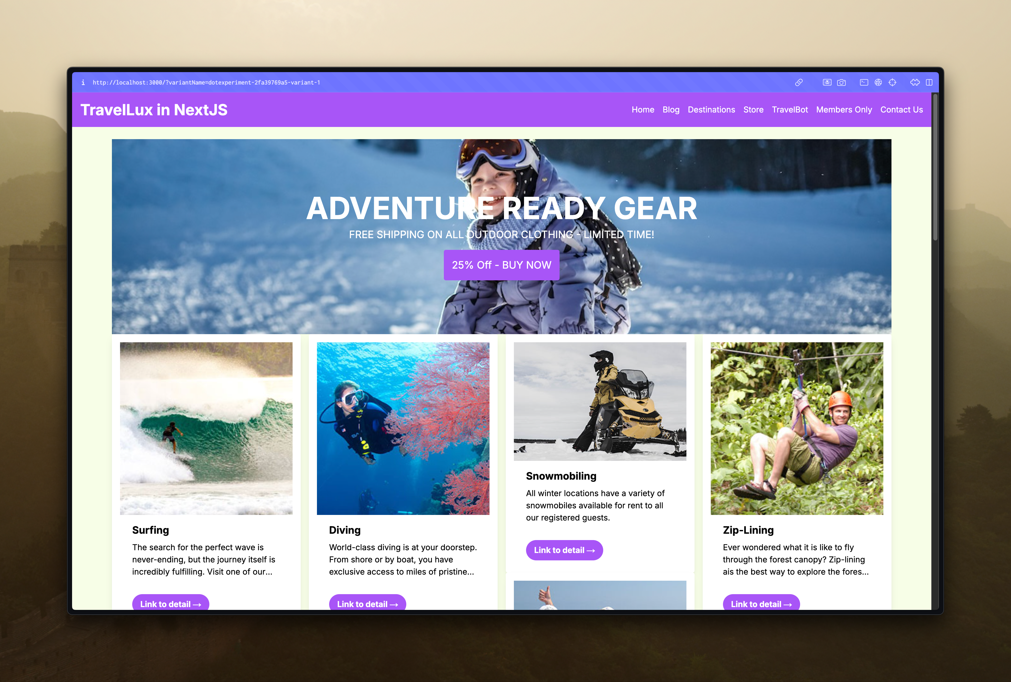 To demonstrate what we'll be building, let's examine two variants of a homepage that showcase how the experiments functionality works in practice: