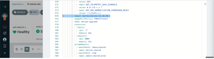 Here’s a more concrete illustration of how you can change your dotCMS version and let ArgoCD do the rest.