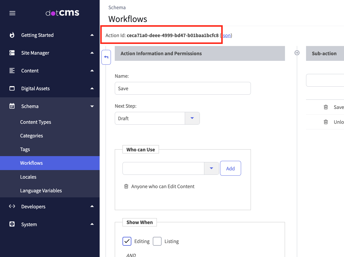 Replace "yourPublishWorkflowActionID" with the ID of the Publish Workflow (you can get this from the Workflows tool by clicking into the workflow you are using for the content_type, then selecting the workflow action you want to send the content through, then selecting the ActionID at the top left of the screen for the workflow action)