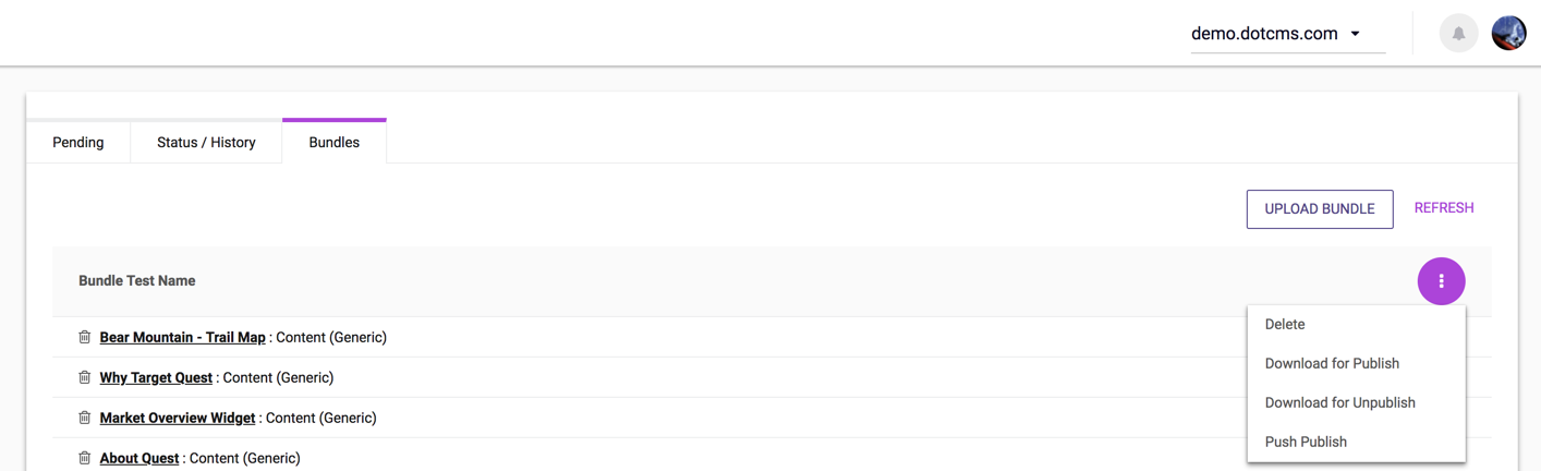 dotCMS Bundles include a downloadable manifest that shows everything that is included in the bundle.