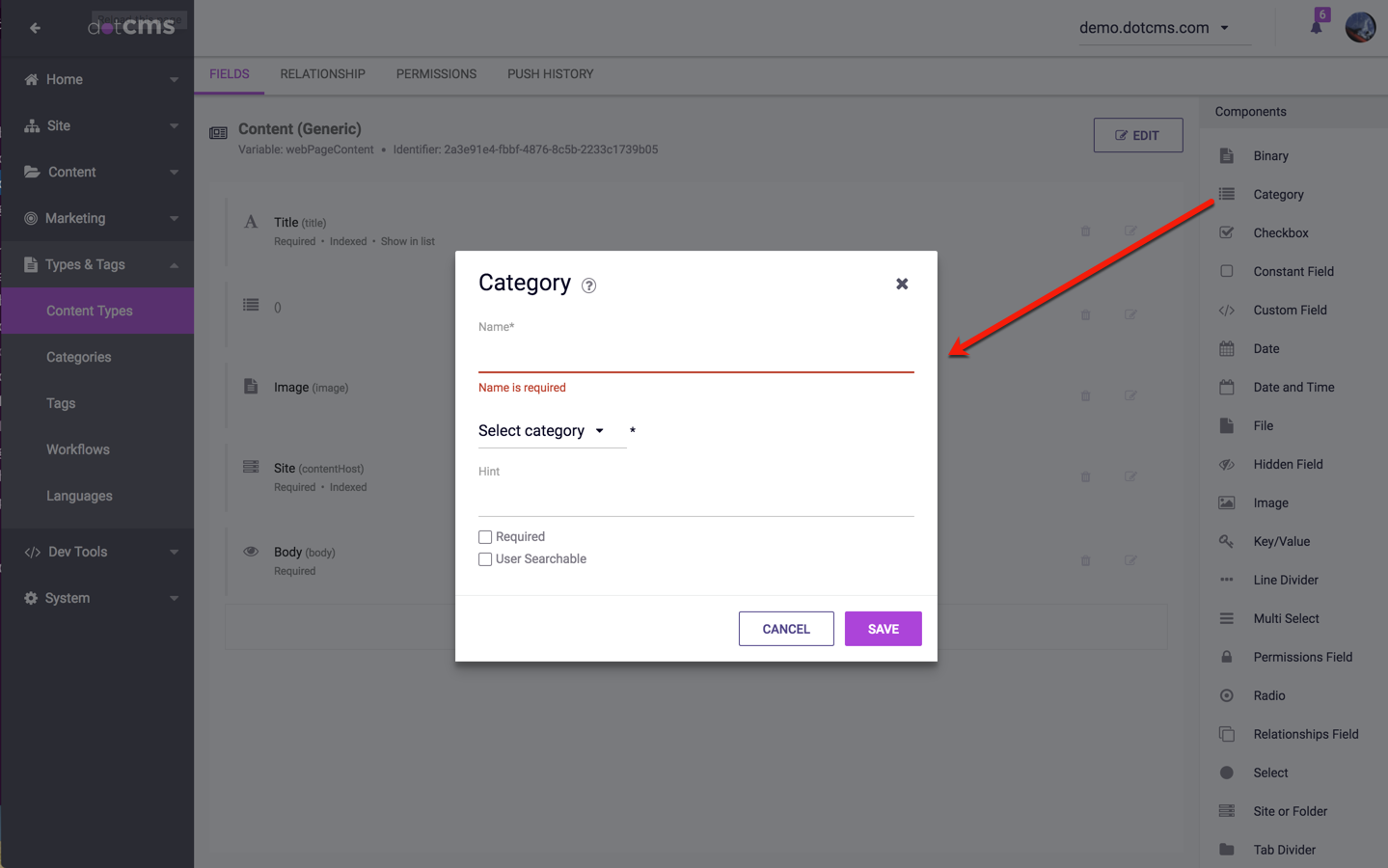• If the Category field is Required, this means that the user will not be able to add new content, since they will not be able to add a value for the required Category field.