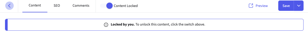 The top bar also includes a switch to control the lock status of the content.