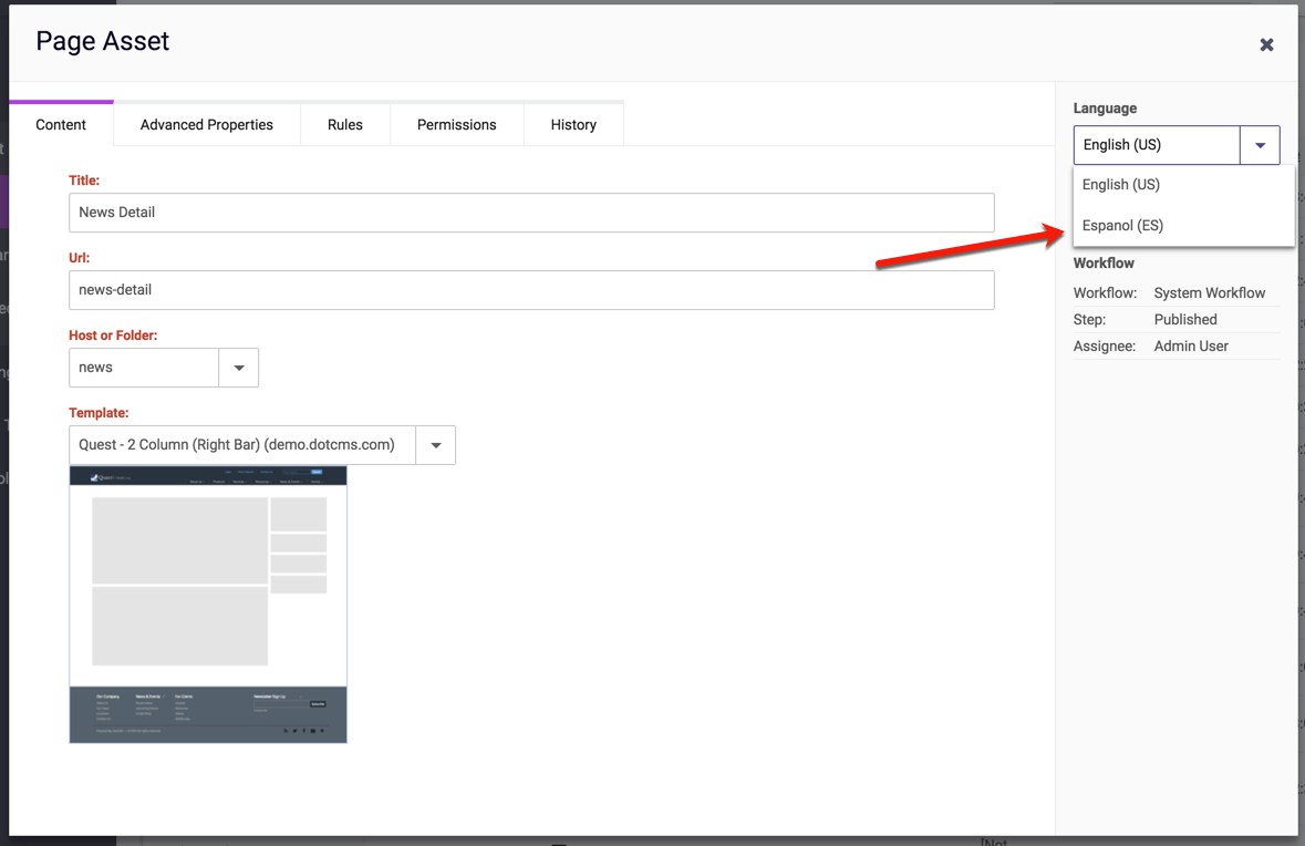 For more information on configuring dotCMS system properties to pull default language versions of content see the documentation on configuring languages, default languages, and pulling multilingual content.