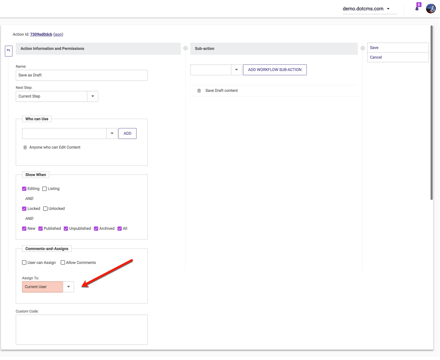 The "Current User" system role provides a mechanism within the workflow system for an object to be assigned to the user who is drafting/publishing the dotCMS asset, instead of passing the asset (via workflow), to another user or user role.