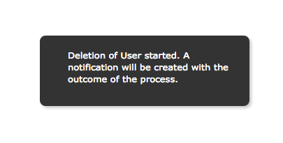 Upon choosing a replacement User, and clicking Delete, you will be prompted to confirm the delete, and then the old User will be deleted and replaced by the newly selected User. Upon confirmation of the User deletion, you will be notified that the User delete process has started.