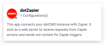 That's all on the dotCMS side for the moment. The next stage of configuration occurs in Zapier.