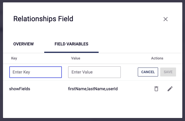 This variable allows you to configure which related-content fields are visible as columns to users editing a contentlet containing a Relationship field.