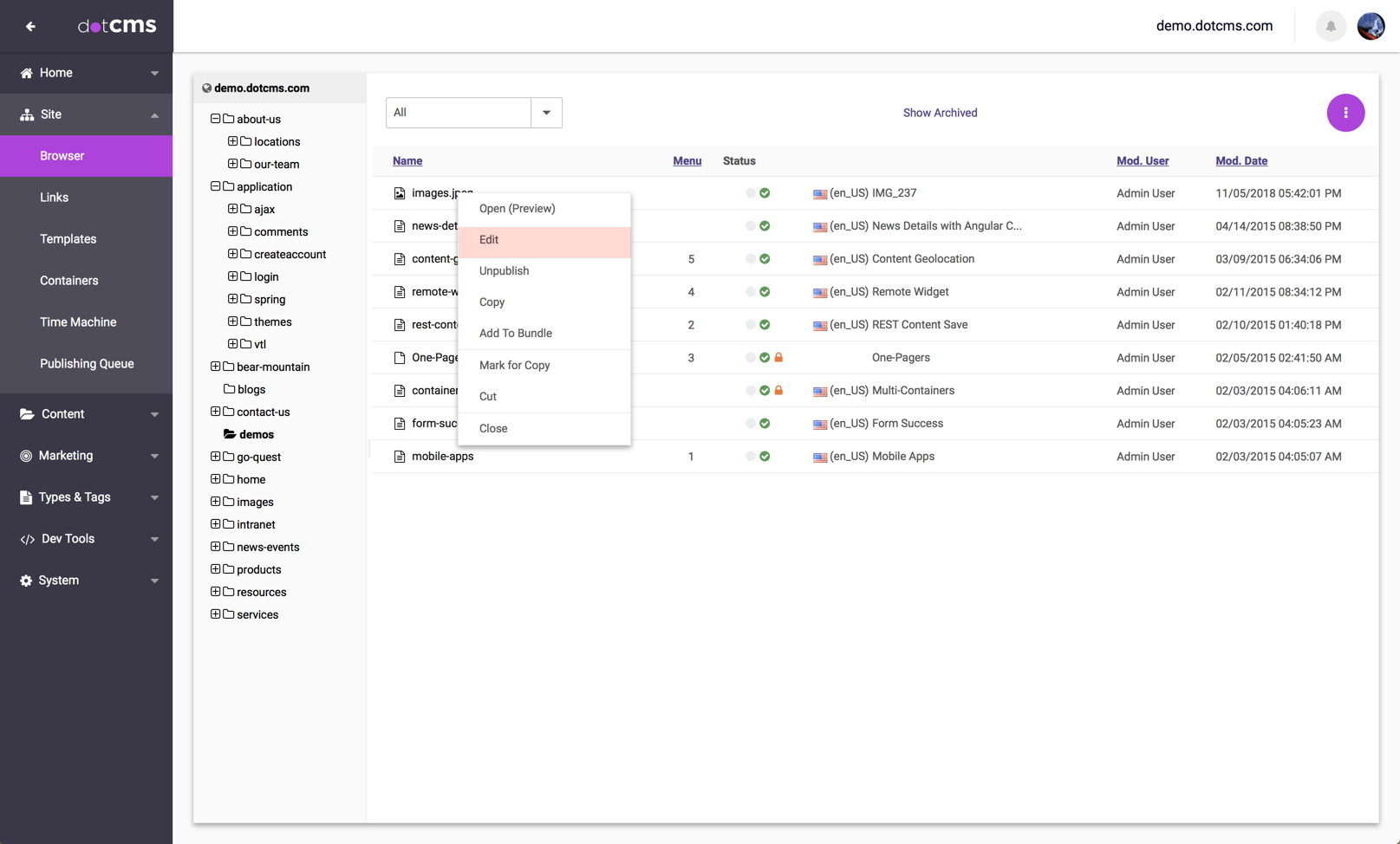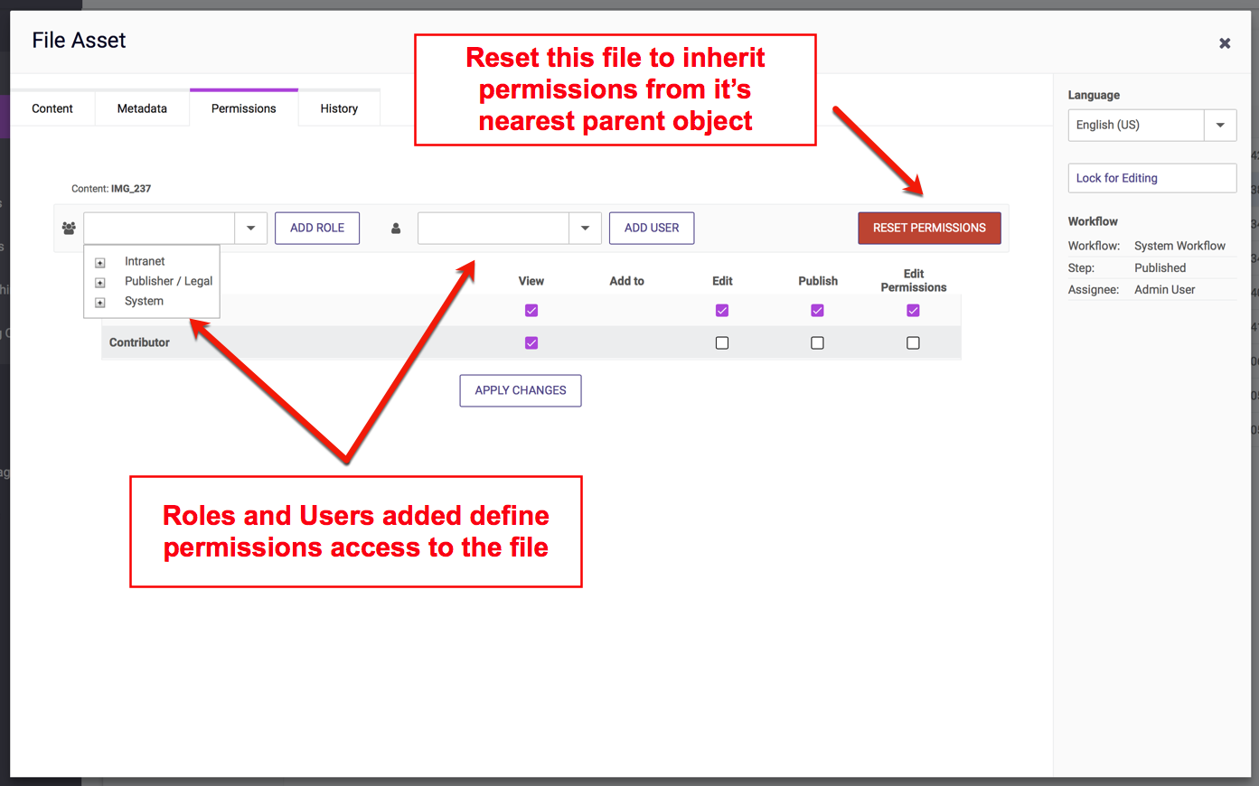 *For more information on setting permissions on dotCMS objects from the System Host, please see the documentation on Role Permissions.