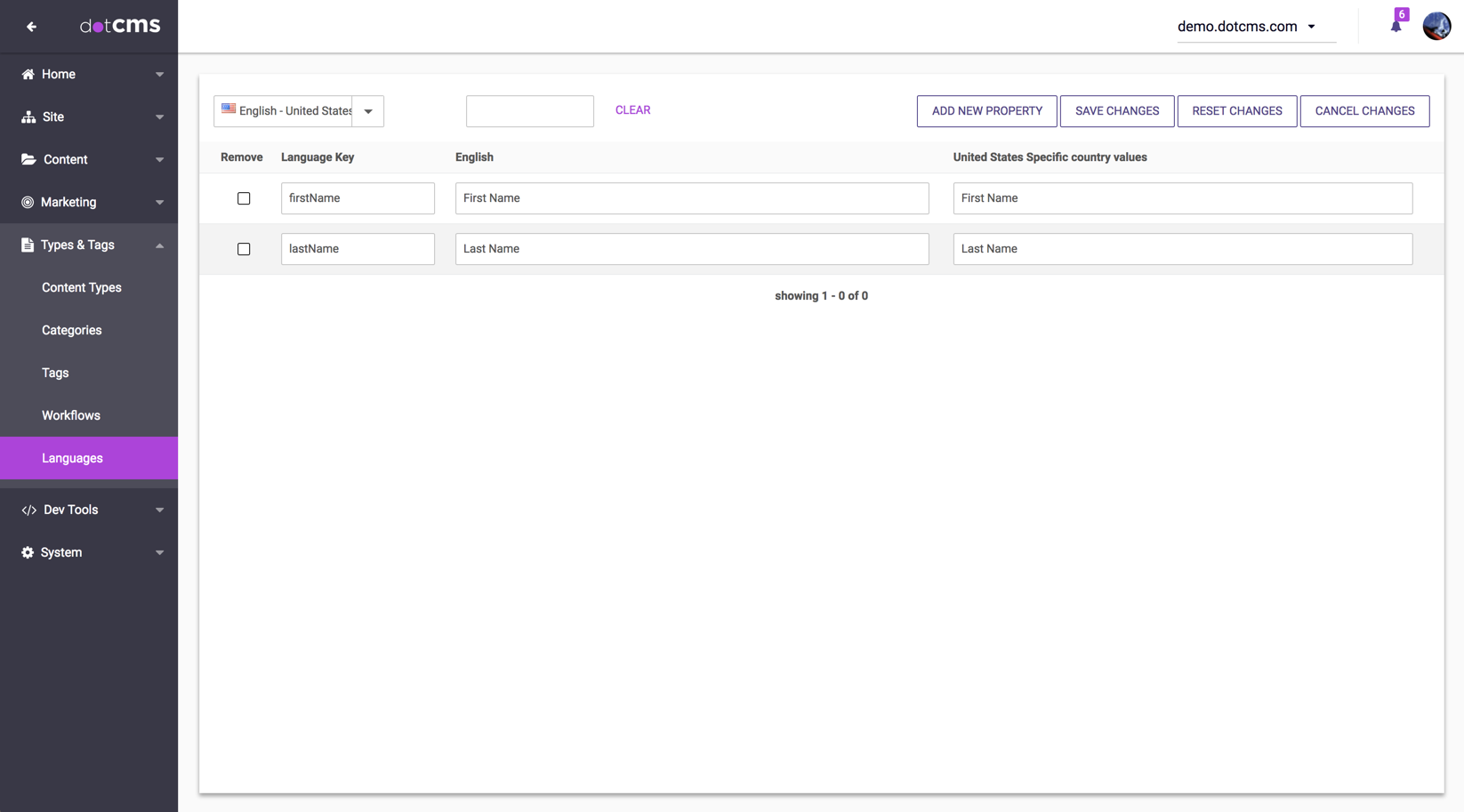 In these language properties files, common terms such as "Submit", "Forgot Password", "Name", "month", and many more have already been translated in multiple languages. However these default laguage variables can be over-ridden or new variables added on the dotCMS backend as global language variables.