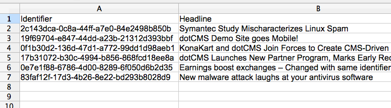 - When you export content from dotCMS to a CSV file, the identifier column is always included.
