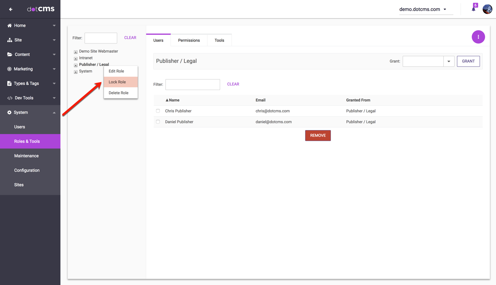 To lock these changes, right-click on the role in the role hierarchy and check Lock Role. This forces the Template Manager -> Publish permission on all templates and prevents changes to this permission.