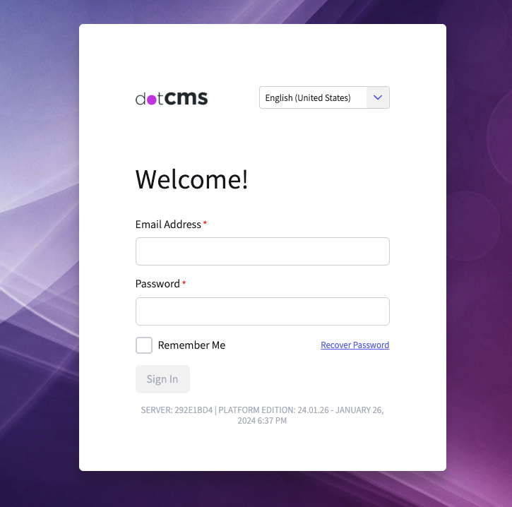 Depending on how your System Administrator has configured your dotCMS installation, your username will be either an email address or a user id.
