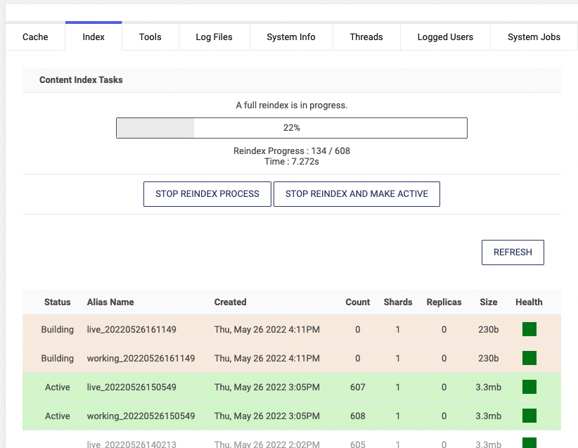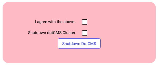 - As of dotCMS 23.08.16, the shut down utility also includes an option to shut down the entire connected cluster.