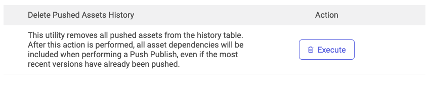 To delete the push history of all content on the entire system, select System -> Maintenance and click the Tools tab. The Delete Pushed Assets History tool removes all pushed assets from the history table; this both cleans up old push history and ensures that all asset dependencies will be included in every push, regardless of when content was last pushed to the receiving server.