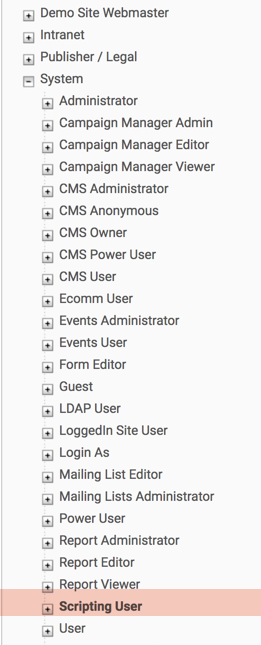 - For the Scripting User Role to work properly, it must be configured to use the Scripting Developer role Key. The default configuration includes this role Key, and the key should not be changed.