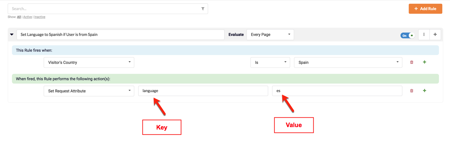 The following example retrieves the value of a key called "language" which had previously set in the Rule: