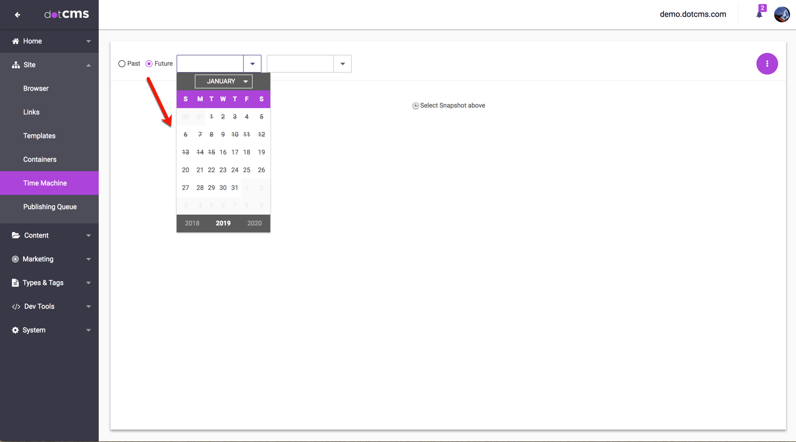 We're planning to move the future-focused section of the Time Machine to the scope of individual pages, where it will be handled through our Universal Visual Editor. Time Machine snapshots of past versions of a site will be removed altogether; to preserve static snapshots of existing sites, we recommend using static push-publishing.