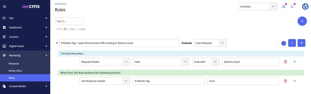 X-Robots-Tagin the header for all requests exists on each host that ends in…dotcms.cloud - Only after the production site(s) are completely ready to launch, add the